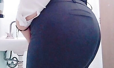 Sexy Mexican MILF secretary with a large butt takes off her uniform at the office and shows her nice and voluptuous ass