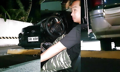 morena monta una polla en el asiento trasero del auto. amateur orgasmo público