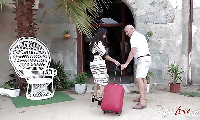 seduciendo a su suegro y queriendo su esperma dentro de ella, la esposa súper sexy descarga y reza por su semen