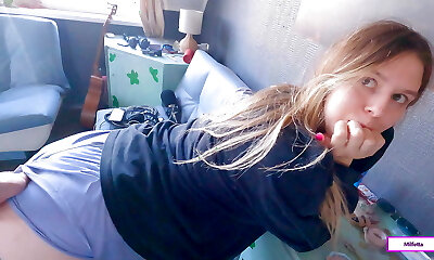 hermanastra rusa toma la polla en su agujero rosado y folla en pov