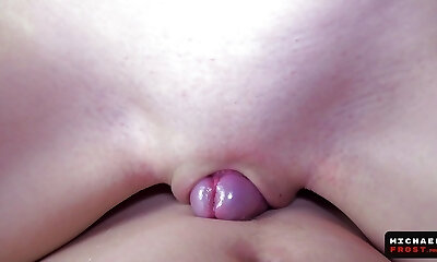 primer plano, hermoso coño rosado corriéndose sobre una polla gruesa
