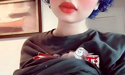Young Goth Puts on Dark Crimson Lip Liner and Plays with Huge Puffy Nipples