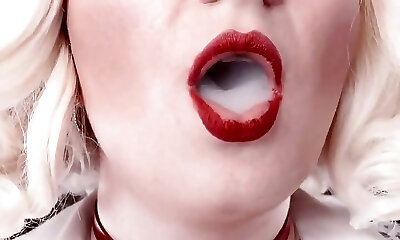 Smoking Fetish: Solo Sumptuous Video of Hot Blonde Bratty MILF Arya Grander Glaminatrix Close up Red Lips