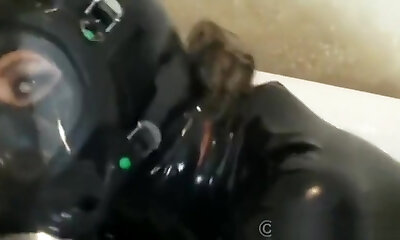 Rubber Slave Dana restrain bondage with foil and breath play