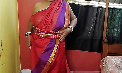indyjski sizzling mama pokazuje jej soczyste cipki w czerwonym sharee