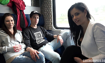 Insane Teen AV Gal On The Bus Jerks Her Beau Until He Cums