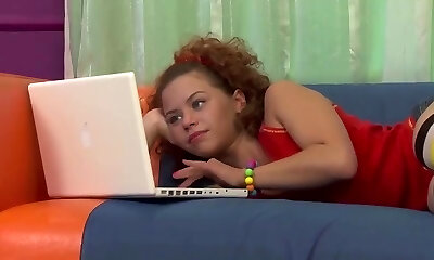 Older boy plows wet pussy of skinny redhead Russian Luna Lynx