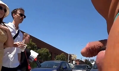 公众肿胀CFNM海滩遭遇夫人和男性化暴露狂之间