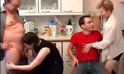 高级扫平夫妇有一些乐趣与年轻女孩迷人的女朋友