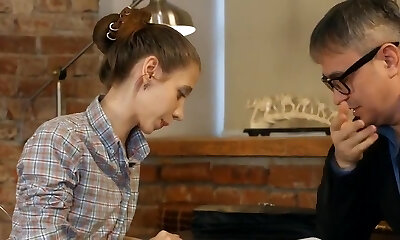 Pervy tutor cums in his skinny student !