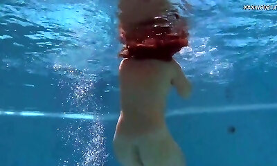 big-boobed und spektakuläre frische rothaarige stunner im pool zieht sich unter wasser