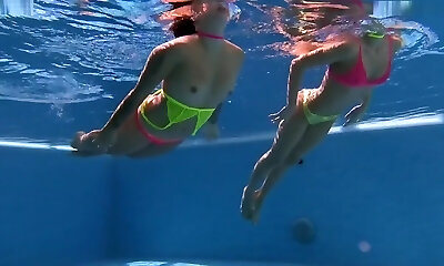 beobachten sie die sexiesten nymphen nackt im pool schwimmen