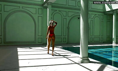 créature blonde ayant des rapports suprêmes dans la piscine