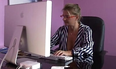 screwing in office with chesty euro milf in glasses