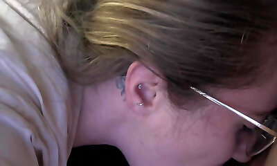 My Sexy Red-hear GF Fellates And Tugs My Dong Up To Getting Her Glasses Cummed