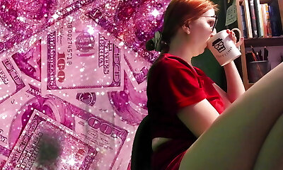 Red haired bookkeeper Amber Dawn is playing with closeup fuckbox