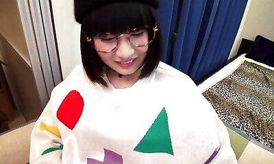 Asian sweetheart with glasses looks like a geek but fucks like a