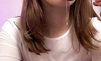 Teen wear glass play with vibrator