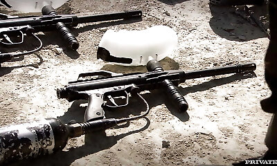 bionda chic ottiene un dp da due soldati in uniforme