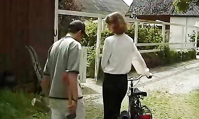 splendida bionda cougar con gli occhiali da sole si sente viziosa per una giovane donna di campagna