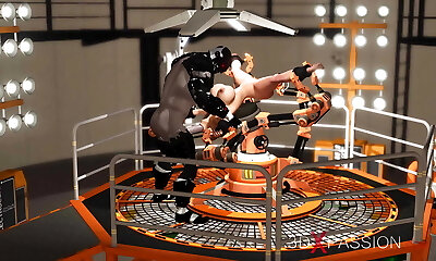 Boink machine & crazy sex. Male android plays with a insatiable girl in restraints