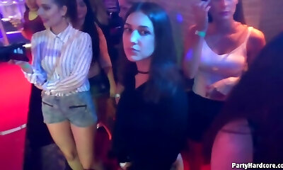 Some lusty shameless clubbing bitches are ready to striptease and fellate dicks
