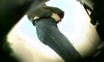 Woman in high stilettos caught in public toilet pissing