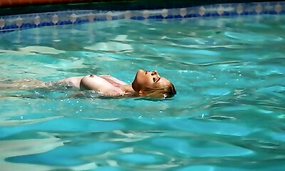 Pornographic Star Heidi Van Horny swims naked in the pool