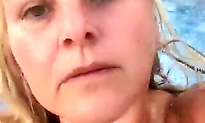 Kitty Queen - Just Nude Swimming - Platinum-blonde Bbw MILF swimming in the pool