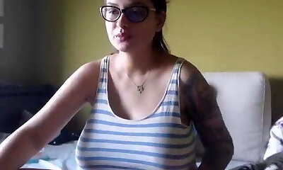 chubby damsel smoking while playing with her massive tits